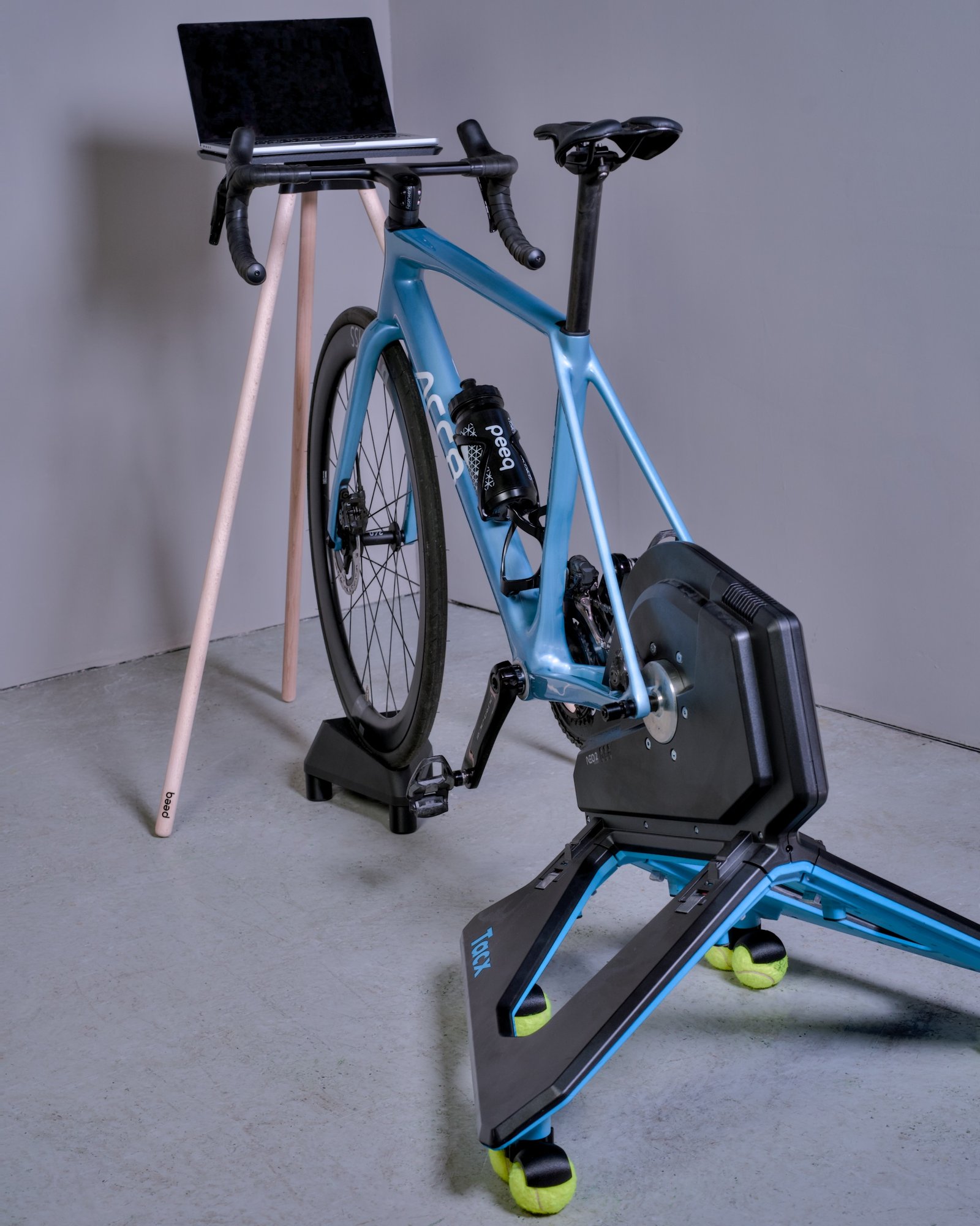 Die peeq Rocker Feet für den Tacx Neo 2T bringen spürbare Beweglichkeit in dein Indoor-Training. Durch die Dämpfung der Tennisbälle steht der Smart Trainer nicht mehr starr auf dem Boden, sondern kann sich in alle Richtungen frei mitbewegen. Das Ergebnis ist ein deutlich natürlicheres Fahrgefühl, das sowohl kurze Sprints als auch lange, ausdauernde Sessions spürbar komfortabler macht.